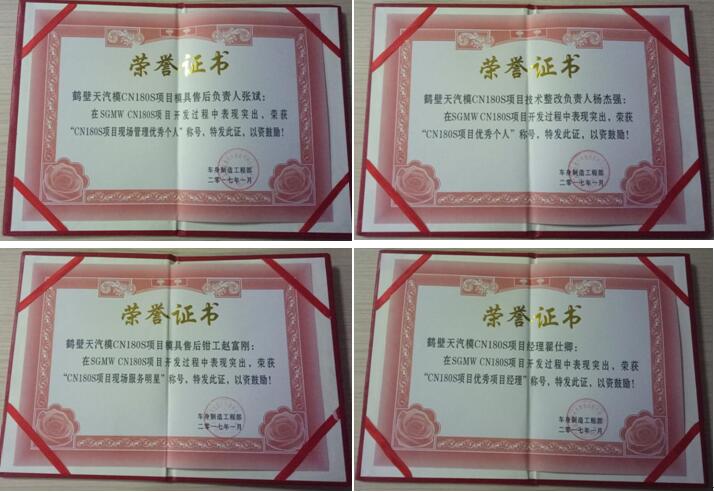 辛勤的工作和優(yōu)異成績(jī),分別獲得了長(zhǎng)城汽車股份有限公司、上汽通用五菱汽車等供應(yīng)商和我市企業(yè)家協(xié)會(huì)的肯定和認(rèn)可,特為我公司頒發(fā)了優(yōu)秀供應(yīng)商和先進(jìn)單位獎(jiǎng)牌,并為在工作中表現(xiàn)突出、對(duì)公司貢獻(xiàn)較大的先進(jìn)集體和先進(jìn)個(gè)人頒發(fā)了榮譽(yù)證書。